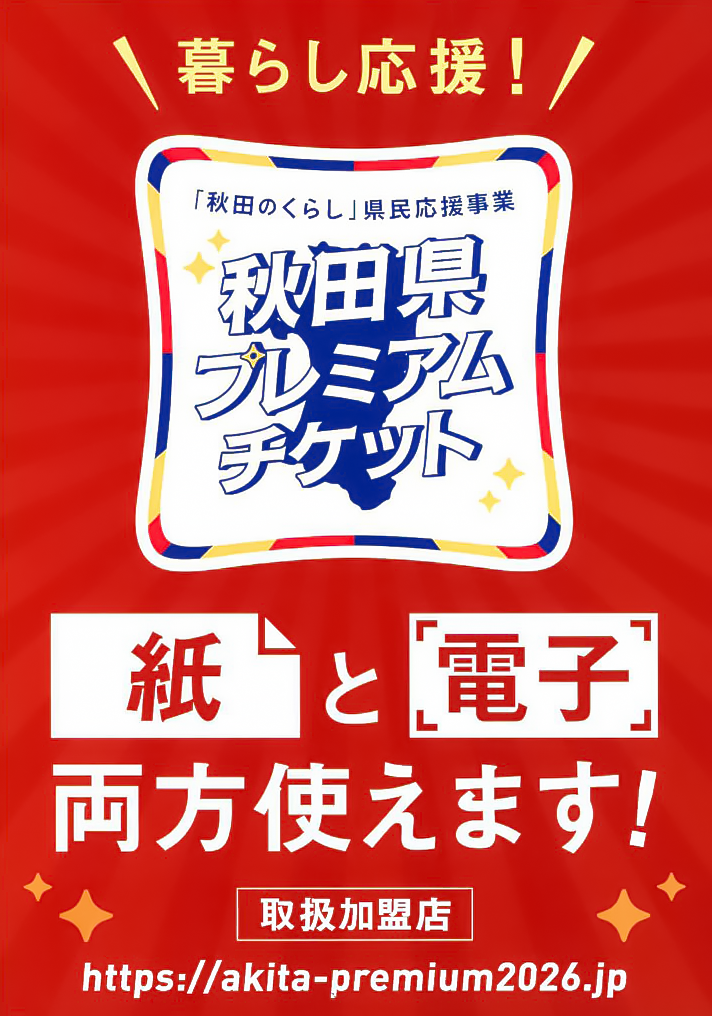 《秋田県プレミアムチケット》ご利用できます